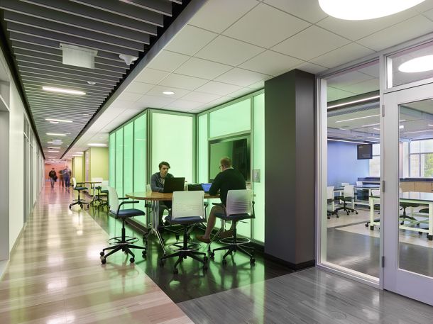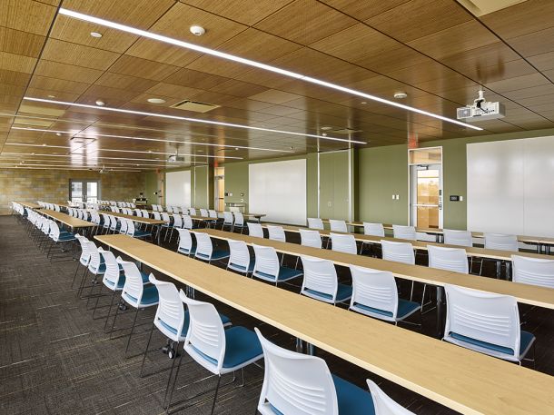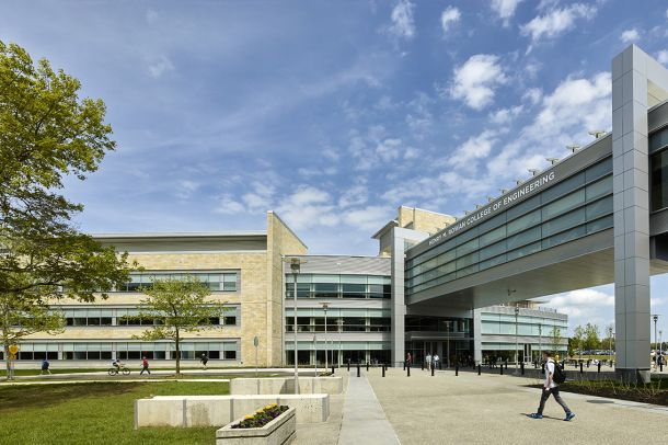 This 88,000 SF College of Engineering expansion connects to the original Rowan Hall with an elevated pedestrian bridge. The new building features wet and dry research laboratories, classrooms, conference rooms, faculty and staff offices, a dining facility and support spaces for STEM-related academic programs. The project scope also included new landscaping, surface parking, roadway access improvement and the addition of a traffic signal at Bowe Boulevard.