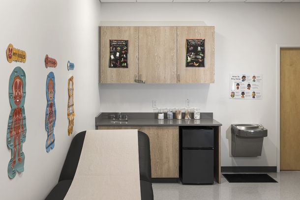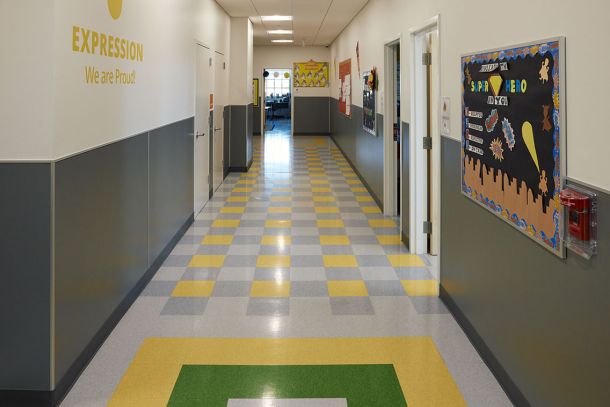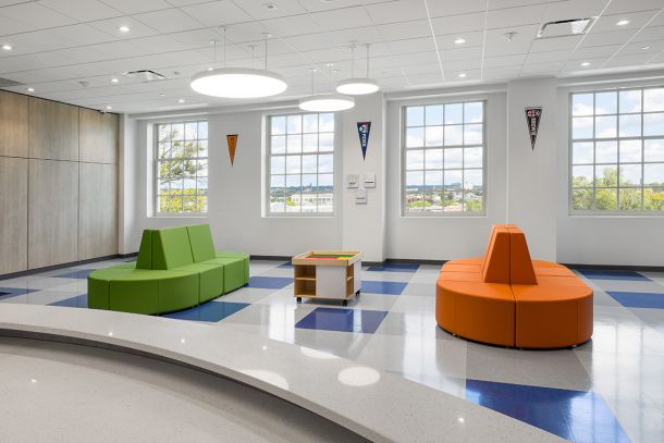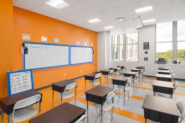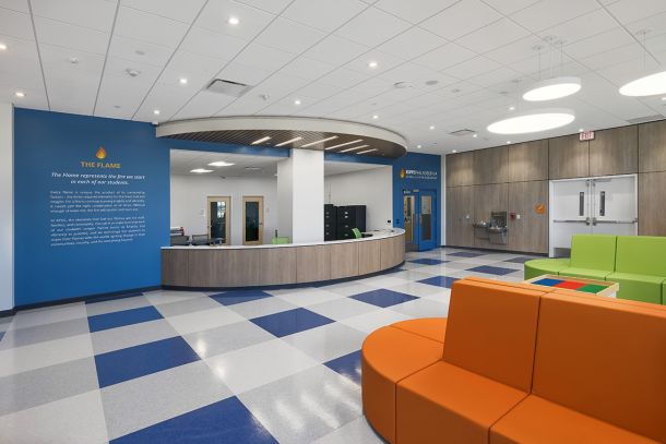This 43,345 SF fit-out of the 4th floor within the five-story historic 4601 Market Street building houses the new K-4 elementary charter school. The project scope included lobby/reception, administrative offices, conference room, nurse’s office, 24 classrooms, two (2) small group instruction classrooms, three (3) small group meeting rooms, art room, cafetorium with kitchen, boy’s/girl’s/staff restrooms, IT room, utility closets and support spaces. Clinical Services features a centralized open workspace that connects to a teacher work room; separate offices for social services, speech, special education; and two (2) private counseling rooms.