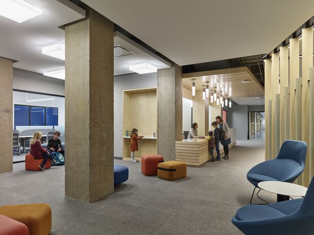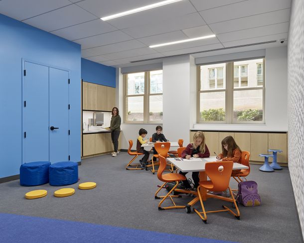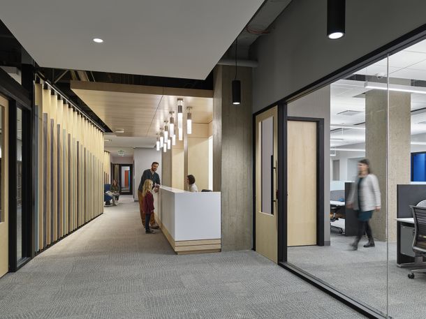 This 50,000 SF fit-out of The Center for Autism’s new headquarters included the lobby/reception and waiting area, an open office area with a shared pantry and a conference space surrounded by perimeter private offices. A variety of rooms support the Center’s various programmatic needs (evaluation, therapy, sensory, life skills, gross motor skills). The project scope also included the installation of new HVAC, electrical, plumping/fire protection, and AV/Telecomm/Security systems.
